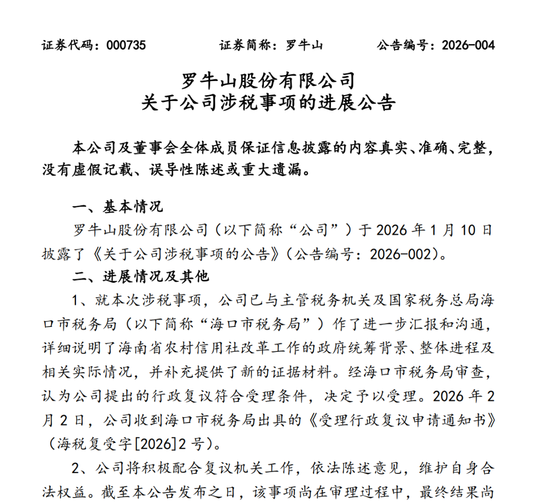 罗牛山:因改制重组补税的行政复议申请终于获得受理