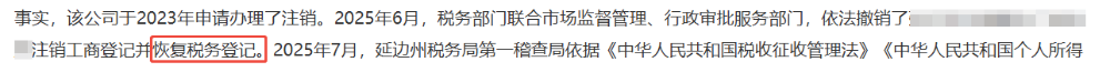 强制恢复税务登记+清税证明被作废!