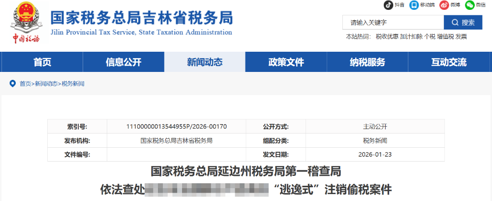 最新通报!2026年1月23日,又一家企业注销后被强制恢复税务登记并查处。