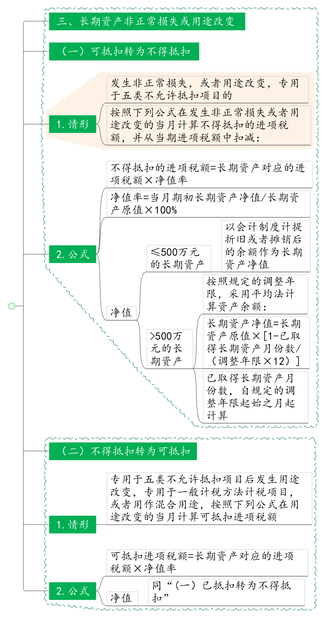 注1:原值超过500万元的单项长期资产,购进时先全额抵扣进项税额,此后在用于混合用途期间,根据调整年限计算五类不允许抵扣项目对应的不得从销项税额中抵扣的进项税额,逐年调整。