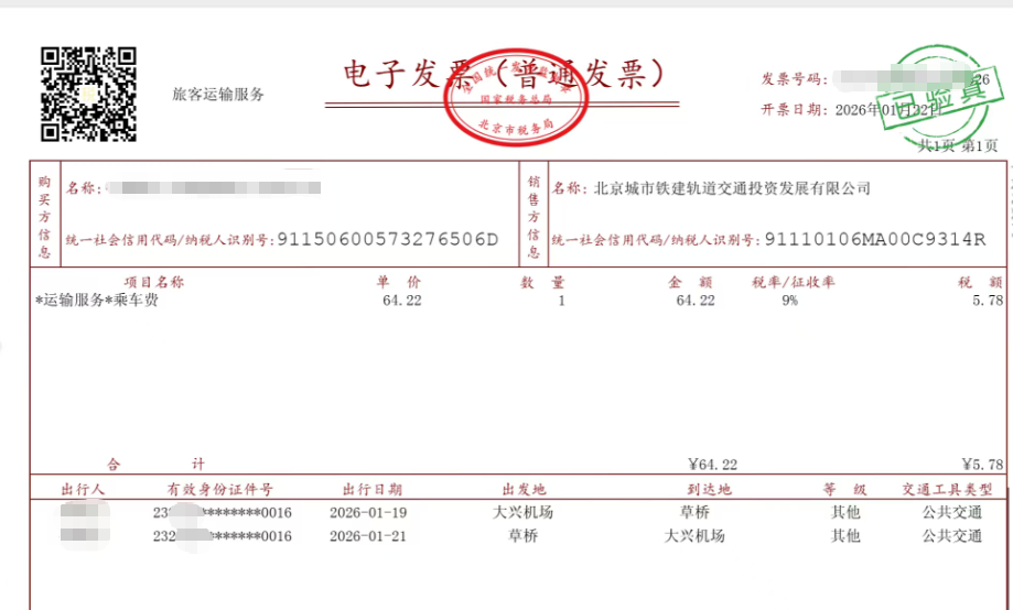 自2024年12月1日起,纳税人取得旅客运输发票需为全面数字化的电子发票,应注明出行人及有效身份证号等信息。