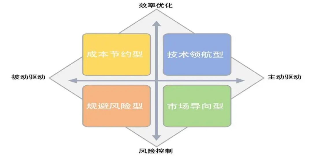 随着中国智造崛起,越来越多的中国企业投入全球化浪潮,出海模式日趋多样。从企业视角出发,以驱动力为横坐标、以目标导向为纵坐标,将企业出海建厂模式分为市场导向型、技术领航型、成本节约型、规避风险型。