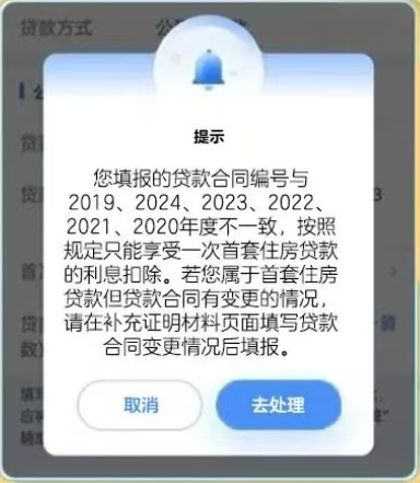 近来,有部分纳税人反映在个人所得税App上填报2026年度的住房贷款利息专项附加扣除时,系统提示“贷款合同编号与以往年度不一致”,这该怎么处理呢?