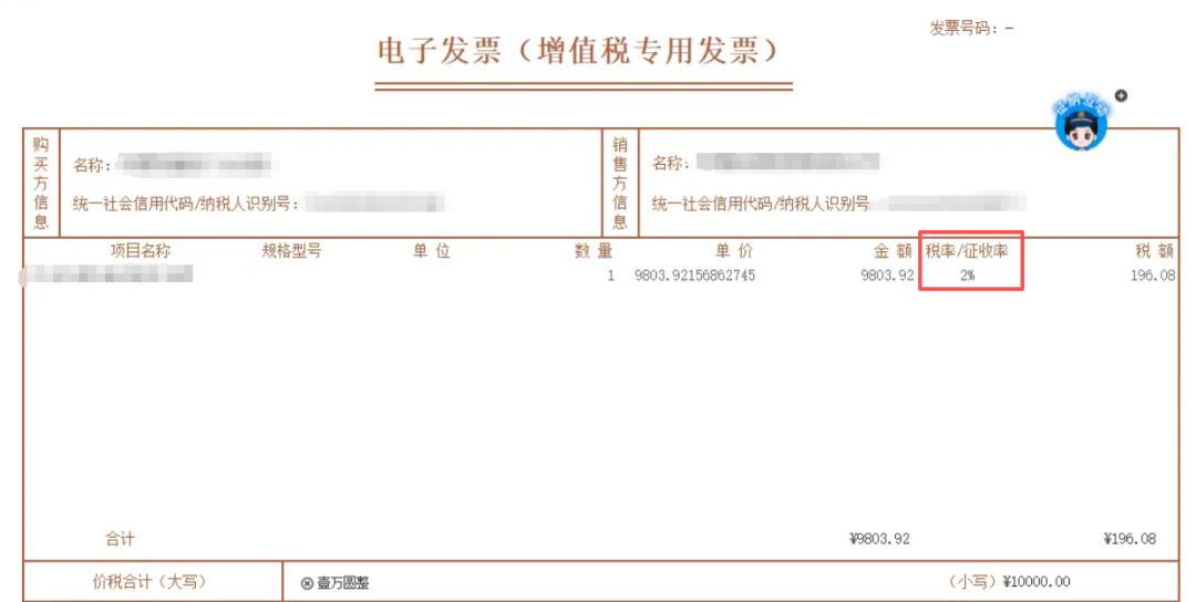 先去项目信息维护中维护,“优惠政策及简易计税”选择“是”,“优惠政策及简易计税类型”选择“按2%简易征收”。然后再去开票的时候即可开具征收率为2%的发票了。